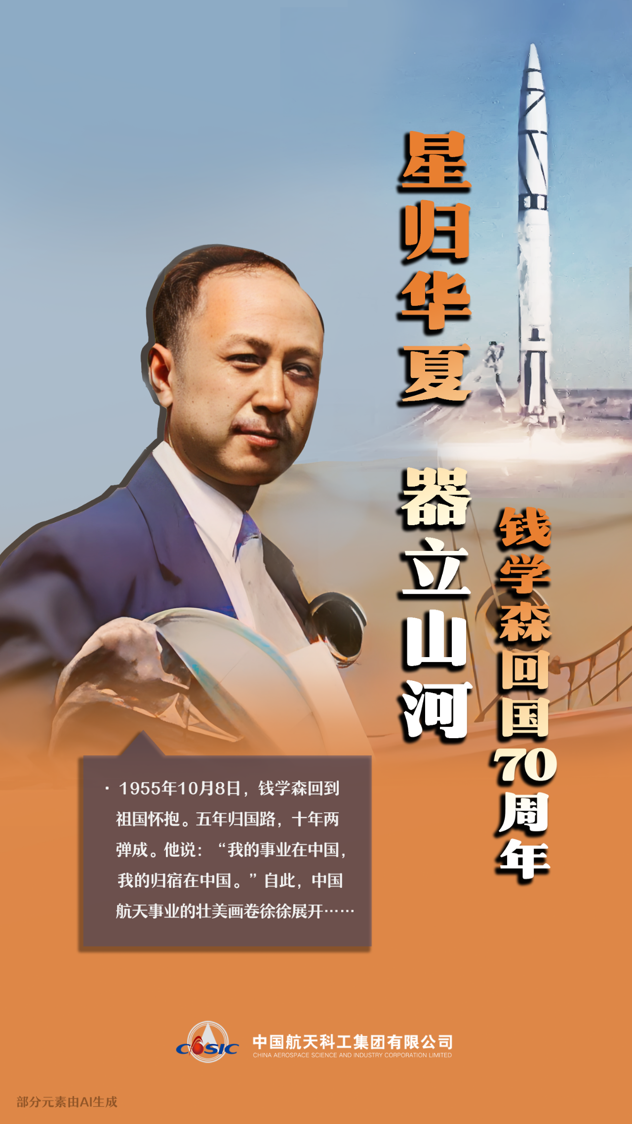 星歸華夏、器立山河,追憶錢老、傳承精神,繼往開來、接續奮斗。(海報/張彤 文案/韓超)